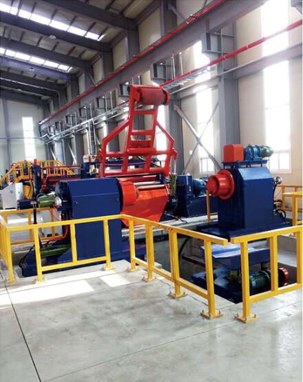 本設(shè)備是將鋼卷板通過整平后、定尺沖壓落料、橫剪廢料的方式、把鋼板加工成客戶需要尺寸的專用自動剪切設(shè)備。該生產(chǎn)線的主要設(shè)備由液壓上料小車、開卷機(jī)、接料鏟頭、整平主機(jī)、渡橋、NC偏擺定尺送料機(jī)、沖壓設(shè)備、圓片輸送帶等機(jī)構(gòu)構(gòu)成。