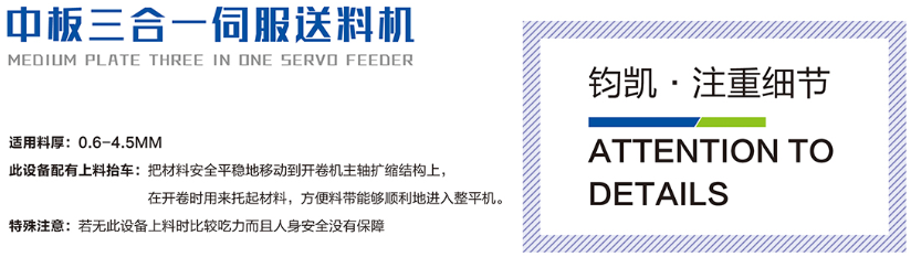 三合一送料機(jī)集送料、矯正、料架三機(jī)一體全自動(dòng)送料裝置,高技術(shù),高精密,高效率,在沖床周邊設(shè)備系列產(chǎn)品上可說是矯正送料機(jī)的頂點(diǎn)表現(xiàn),其功能及優(yōu)點(diǎn)特多,省空間,耐用,操作簡單,對(duì)特長、特寬、較厚材料等效果特別好,在工業(yè)界一致被認(rèn)為先進(jìn)之自動(dòng)送料裝置。