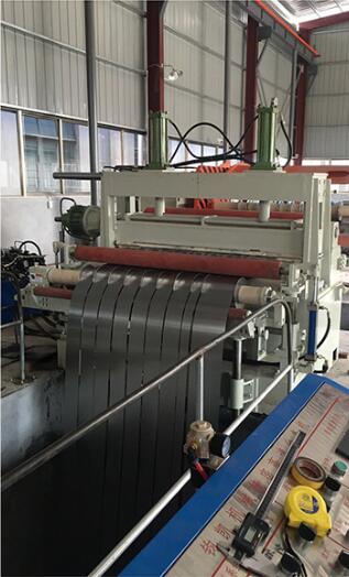 本設(shè)備的工作流程:本設(shè)備是將鋼板(各種金屬材料卷)通過高速精密縱剪加工成需要寬度的專用剪切設(shè)備。本設(shè)備的主要工作主機由開卷機、精密圓盤式刀座、張力產(chǎn)生站、收卷機等四個主要機構(gòu)構(gòu)成,中間輔以收紙、運料、夾送、板頭剪床、緩沖、引導(dǎo)、覆膜、收卷廢邊、分卷剪床、出料等裝置。